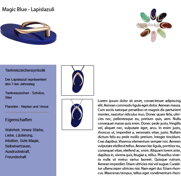 Unsere neuen Shankla [andalusisch: "Flip Flop"] haben ein einzigartiges Design für Männer und Frauen, aus qualitativ hochwertigem Naturstein und 18kt Gold. Diese originelle neue Kollektion enthält 9 handgefertigte Anhänger, jede mit ihren eigenen Edelstein, eine besondere Bedeutung und 1000 Jahre einer Geschichte.